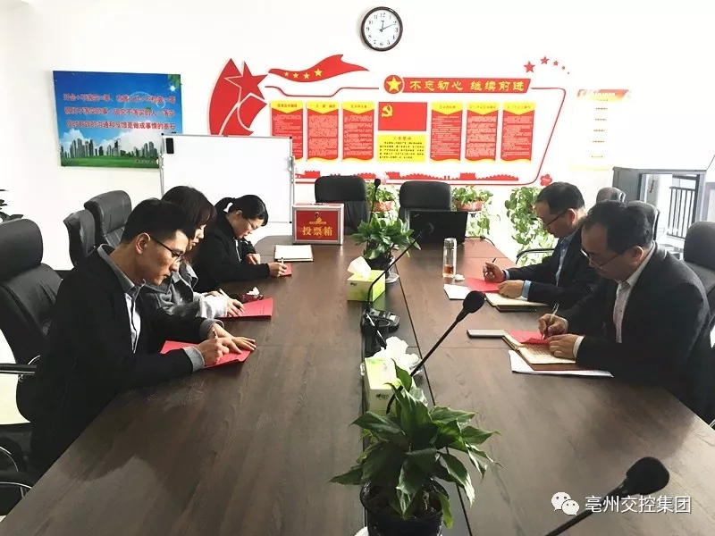 會議首先宣讀了集團黨委《關于同意中共亳州市交通資產(chǎn)管理有限責任公司支部選舉工作的批復》,介紹了黨支部書記候選人基本情況,通過了《選舉辦法》及監(jiān)票人、計票人名單,與會黨員采取無記名投票等額選舉的辦法選舉黨支部書記。通過選舉,張超同志當選中共亳州市交通資產(chǎn)管理有限責任公司支部書記。
