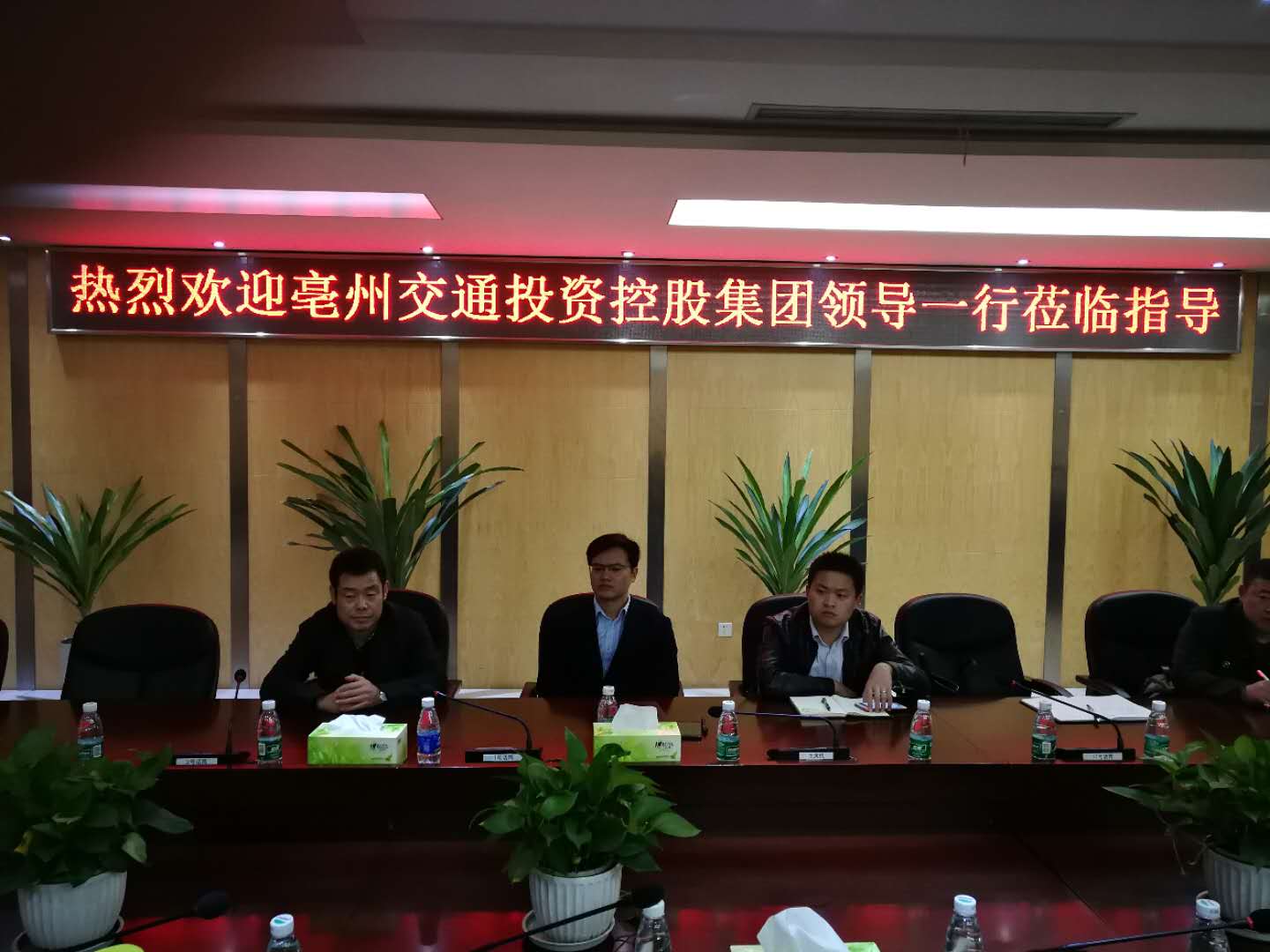 11月9日至12日,集團(tuán)黨委副書記、紀(jì)委書記魏孛率領(lǐng)集團(tuán)有關(guān)部門(公司)赴武漢中建三局、重慶交運(yùn)集團(tuán)進(jìn)行實(shí)地考察,與主要負(fù)責(zé)人就亳州交通投資控股集團(tuán)業(yè)務(wù)拓展、項(xiàng)目合作等磋商洽談,取得了圓滿成效。