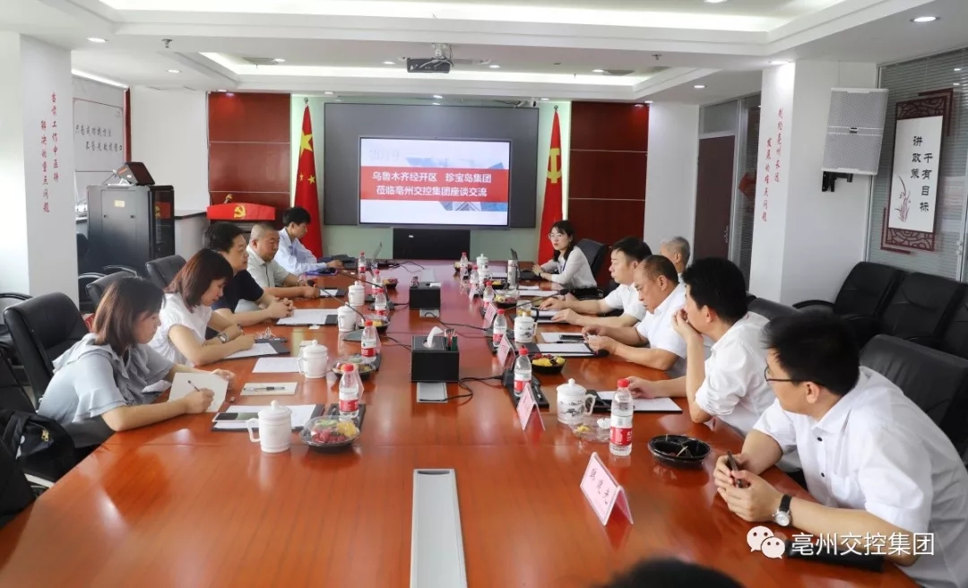 9月9日下午,烏魯木齊經(jīng)開區(qū)管委會副主任、副區(qū)長蒲杰一行,珍寶島集團董事長方同華一行蒞臨交控集團座談交流,集團黨委書記、董事長王鍇主持會議。