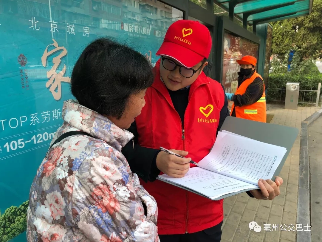 為進(jìn)一步提升亳州公交的服務(wù)水平,給廣大市民朋友營(yíng)造一個(gè)安全、舒適、便捷、高效的出行環(huán)境,11月4日,市交控集團(tuán)組織志愿者在城區(qū)部分公交站點(diǎn)和場(chǎng)站開展為期一周的公交社會(huì)滿意度調(diào)查。