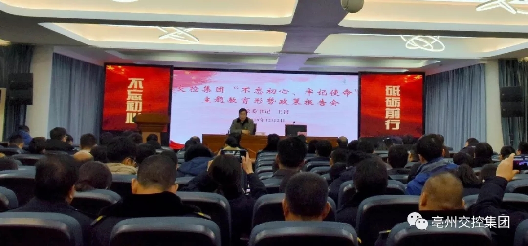 12月2日下午,交控集團(tuán)召開(kāi)“不忘初心、牢記使命”主題教育形勢(shì)政策報(bào)告會(huì)。集團(tuán)黨委書記、董事長(zhǎng)王鍇作了題為《牢記發(fā)展初心、擔(dān)起國(guó)企使命,為建設(shè)五大發(fā)展美好亳州貢獻(xiàn)交控力量》的專題報(bào)告。集團(tuán)黨委副書記、總經(jīng)理劉超主持會(huì)議。集團(tuán)全體黨員及群眾代表參加會(huì)議。