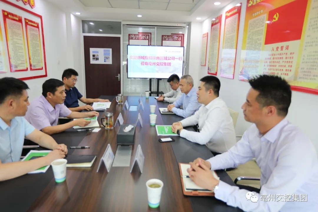 7月8日,新城控股徐州區(qū)域公司總經(jīng)理邵昶魁一行到我集團(tuán)洽談交流,集團(tuán)黨委書記、董事長宋保眾,黨委副書記、總經(jīng)理劉超熱情接洽。