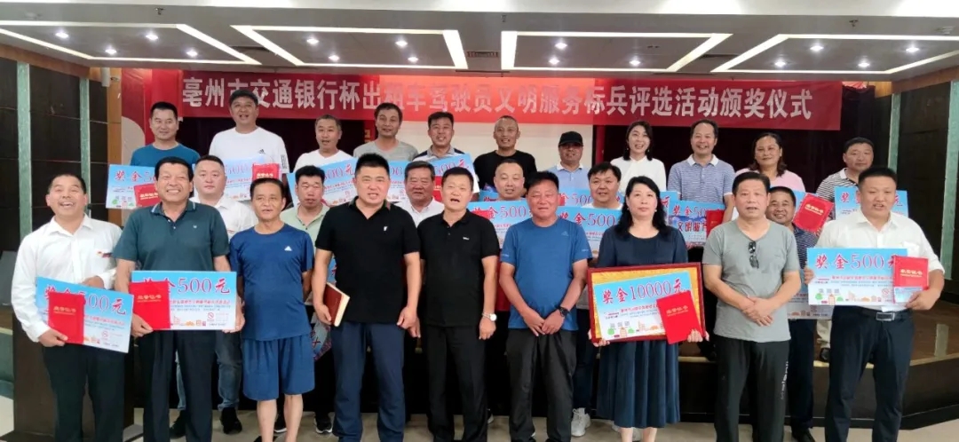 7月9日下午,市交通運(yùn)輸局、市文明辦、亳州廣播電視臺、交通銀行亳州分行等單位舉行出租車駕駛員文明服務(wù)標(biāo)兵評選活動(dòng)頒獎(jiǎng)儀式,現(xiàn)場表彰從107名駕駛員中脫穎而出的20名優(yōu)秀駕駛員,亳州公交出租公司李濤、祝東俠、李東坤和馬金幣4名駕駛員當(dāng)選“文明服務(wù)標(biāo)兵”。