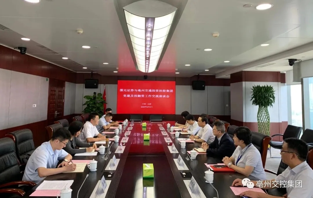 座談會上,蔣希敏重點介紹了國元證券的發(fā)展歷程,在推進黨的建設中的有益探索和經驗做法。會上雙方還針對正在合作的公司債發(fā)行進行了深入交流,一致認為該筆債券推進意義重大,將竭盡全力保證項目發(fā)行成功。劉超表示,國元證券作為省屬企業(yè),不僅在專業(yè)領域取得令人矚目的成績,黨的建設也極具特色、卓有成效。圍繞基層黨組織標準化建設,黨建品牌效應初顯,組織生活豐富,培養(yǎng)了一支精明強干的黨務工作者隊伍。這次考察交流收獲很大,為亳州交控集團黨建和發(fā)展提供了有益借鑒。雙方還圍繞黨建和發(fā)展融合模式、投融資等進行了深入交流。