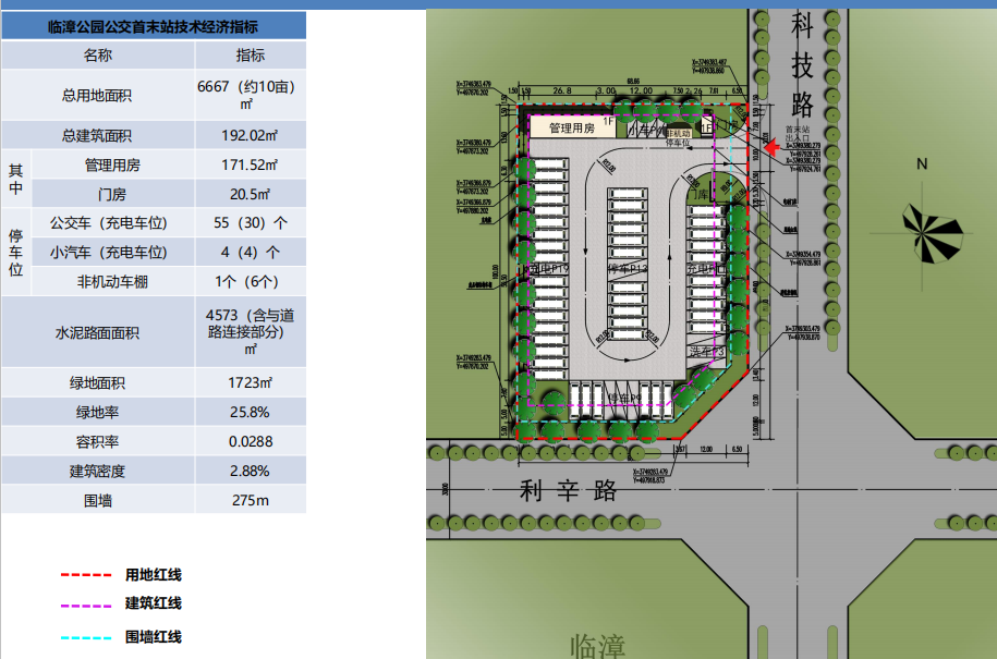 臨漳公園公交首末站位于科技路與利辛路交叉口西北角臨漳公園北側(cè),總用地面積6667平方米,總建筑面積192.02平方米,主要包括門衛(wèi)室、路隊長室、休息室、餐廳、維修工具間、衛(wèi)生間等,設置公交車停車位55個,充電樁30個,預計11月份可投入使用。