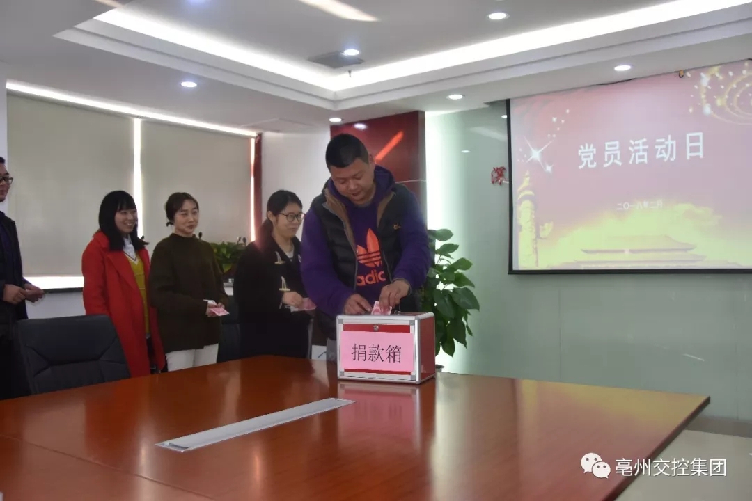 為響應(yīng)號召,集團(tuán)發(fā)出“獻(xiàn)手足情,暖職工心”愛心捐贈倡議書,動(dòng)員大家伸出援助之手,尤其是黨員干部,充分發(fā)揮先進(jìn)性,發(fā)揚(yáng)熱心公益、扶老助殘、救孤濟(jì)困的精神,積極參與扶貧捐助。捐贈活動(dòng)得到了廣大干部職工的支持與稱贊。據(jù)統(tǒng)計(jì),交控集團(tuán)本部共捐款3950元,所有善款將用于對困難職工的扶貧濟(jì)困項(xiàng)目。另外,全體黨員齊唱國歌、集體宣誓、學(xué)習(xí)黨章并交納了當(dāng)月黨費(fèi)。