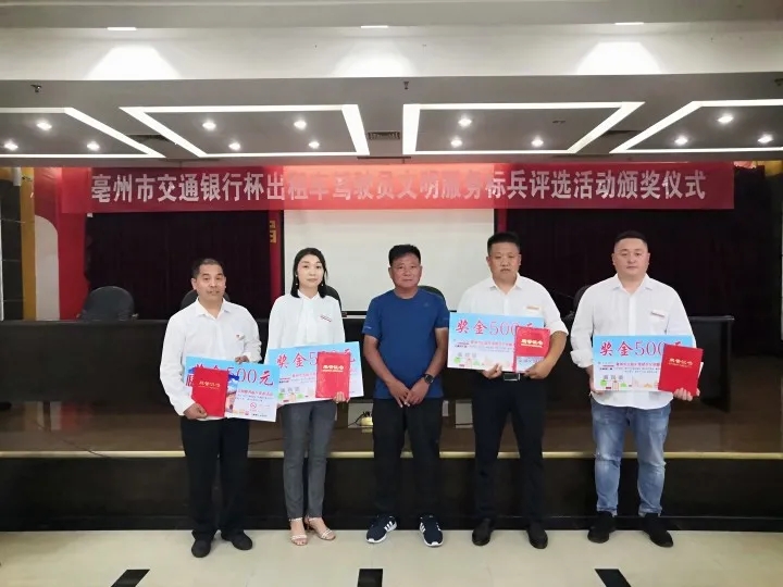 此外,在此次評選中,公交出租公司駕駛員李東坤同志被授予“亳州市文明職工稱號”。李東坤作為一名老黨員,愛崗敬業(yè)、熱情對待每一位乘客。以全心全意為人民服務的宗旨,不忘初心,牢記使命。在日常行車過程中,始終把安全放在首位,把文明當作標尺。