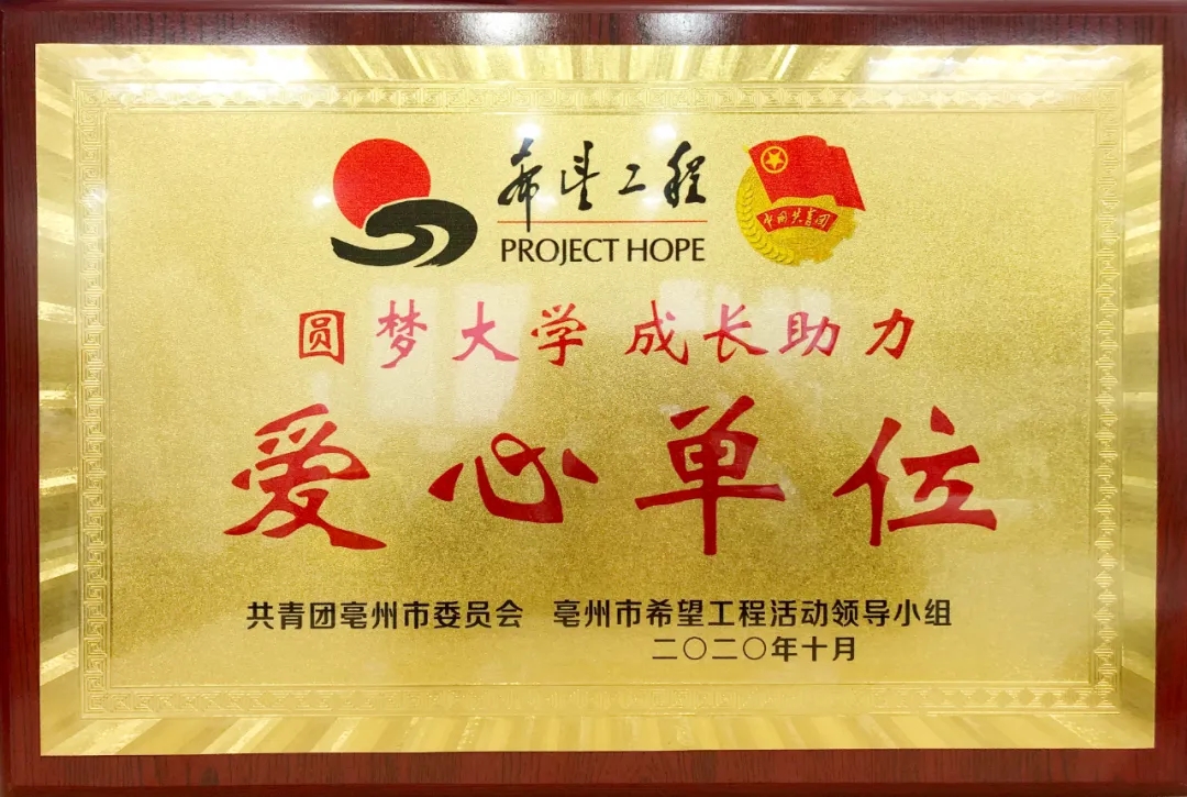 近日,集團(tuán)被共青團(tuán)亳州市委員會(huì)、亳州市希望工程活動(dòng)領(lǐng)導(dǎo)小組聯(lián)合授予“愛心單位”榮譽(yù)稱號。