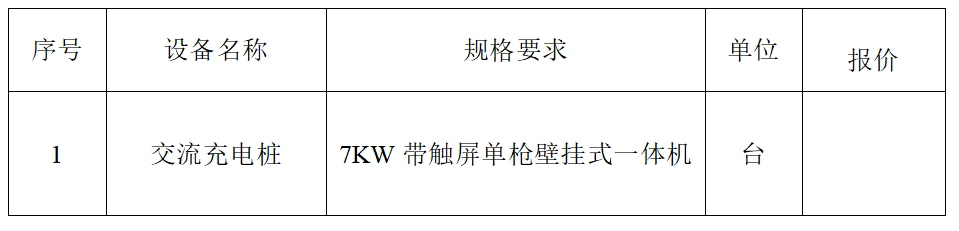 (九)詢價(jià)人要求:在合同期限內(nèi)詢價(jià)人如因需求采購立柱式交流充電樁,每臺(tái)按壁掛式中標(biāo)價(jià)格基礎(chǔ)上另加150元執(zhí)行采購。