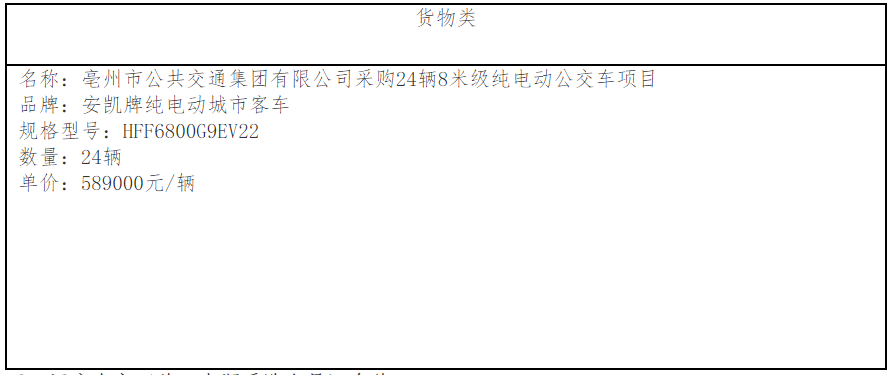 亳州市公共交通集團(tuán)有限公司采購24輛8米級純電動公交車項(xiàng)目