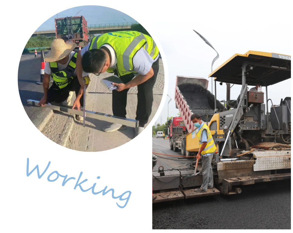 為搶抓工期,面對前期高溫天氣,項目部采取“早上工,晚加班”模式,確保避暑、工程進(jìn)度兩不誤。瀝青混合料攤鋪溫度高達(dá)160攝氏度,施工人員經(jīng)常是“上蒸下烤”,汗如雨下,他們用毅力和汗水、勤勞和務(wù)實(shí)詮釋了交控人不懼“烤”驗(yàn)的擔(dān)當(dāng)、奉獻(xiàn)精神。