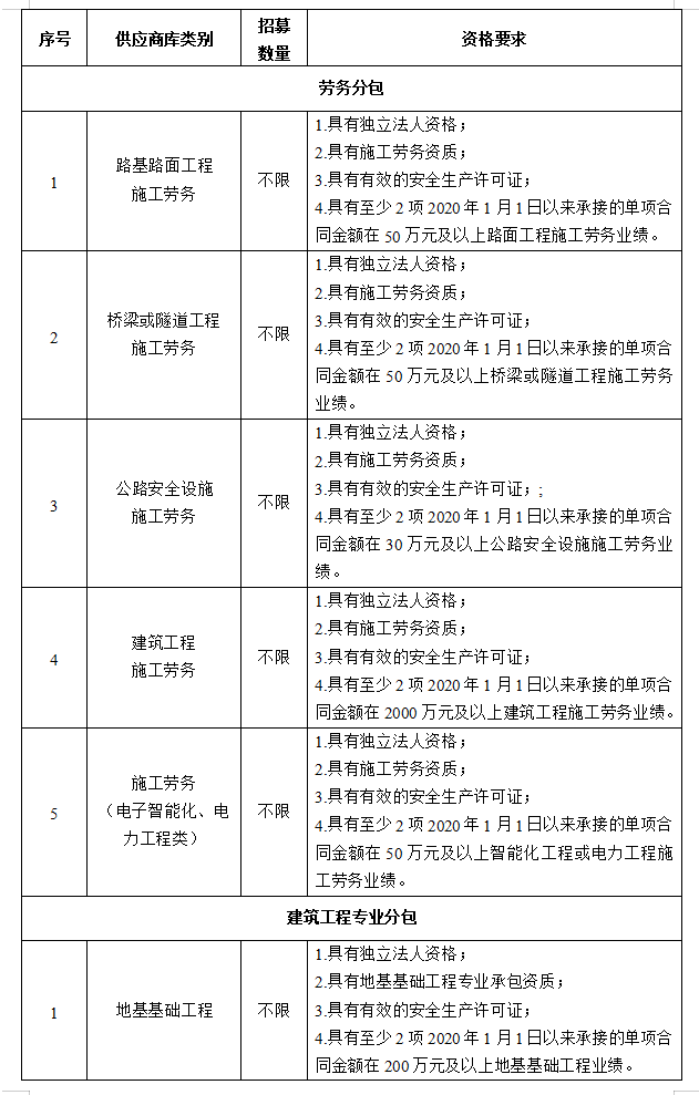 征集項(xiàng)目:亳州交控集團(tuán)工程類供應(yīng)商庫(kù)