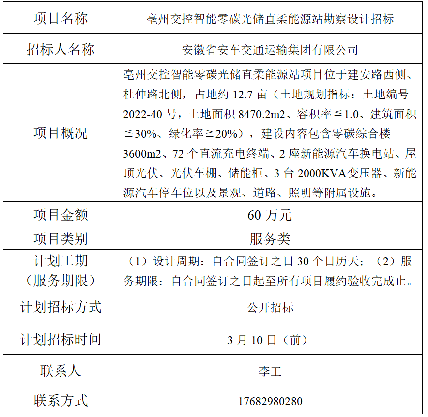 為便于潛在投標(biāo)人及時(shí)了解招標(biāo)信息,現(xiàn)將安徽省安車(chē)交通運(yùn)輸集團(tuán)有限公司 (招標(biāo)人名稱(chēng))的招標(biāo)計(jì)劃發(fā)布如下: