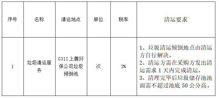 (三)交貨期:清運方需在采購方發(fā)出清運需求1天內(nèi)完成清運。