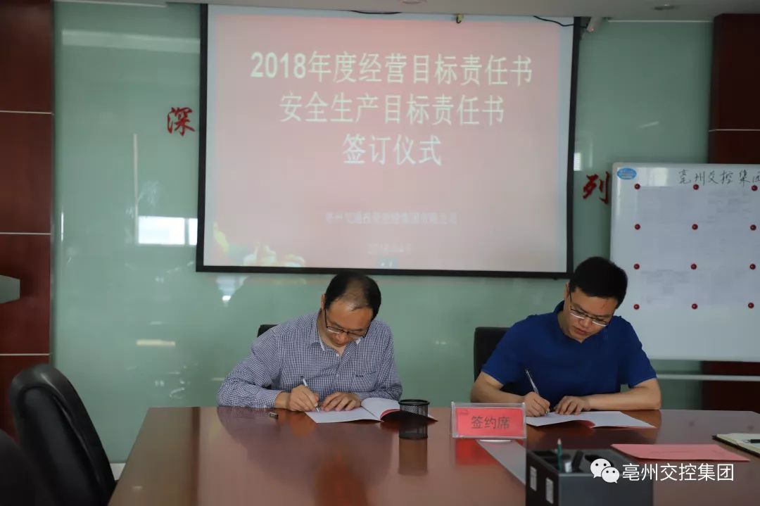 4月28日上午,亳州交控集團2018年度經(jīng)營目標(biāo)責(zé)任書和安全生產(chǎn)目標(biāo)責(zé)任書簽訂儀式在八樓會議室舉行。集團公司領(lǐng)導(dǎo)班子,各子公司、各部門負(fù)責(zé)人員出席儀式。