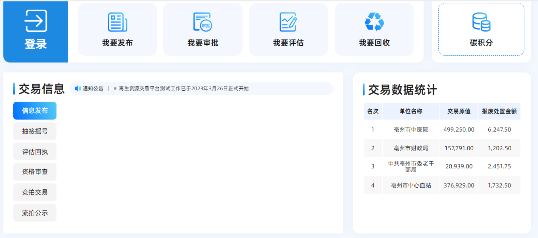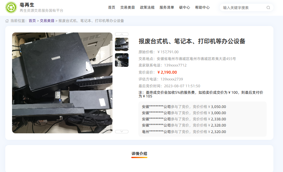 作為市級(jí)物資循環(huán)利用交易平臺(tái),目前,“亳再生”交易平臺(tái)主要聚焦我市行政事業(yè)單位、市屬企業(yè)等資產(chǎn)處置需求,整合供求信息,精準(zhǔn)匹配內(nèi)容,協(xié)助完成報(bào)廢資產(chǎn)的回收處理工作,確保國(guó)有資產(chǎn)保值增值。
