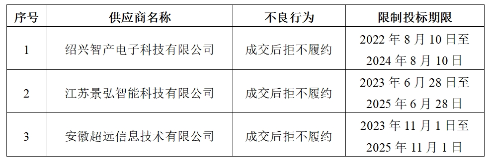 注:在限制投標(biāo)期限內(nèi),禁止被限制投標(biāo)的供應(yīng)商參加亳州交控集團(tuán)及各子公司采購(gòu)項(xiàng)目。
