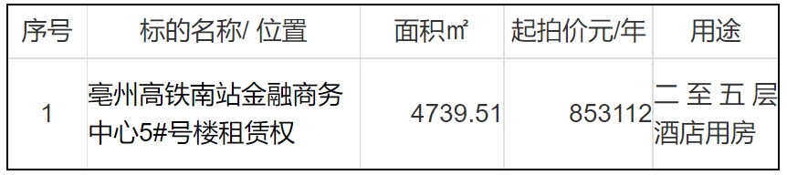 亳州高鐵南站金融商務(wù)中心5#號樓租賃權(quán)拍賣公告