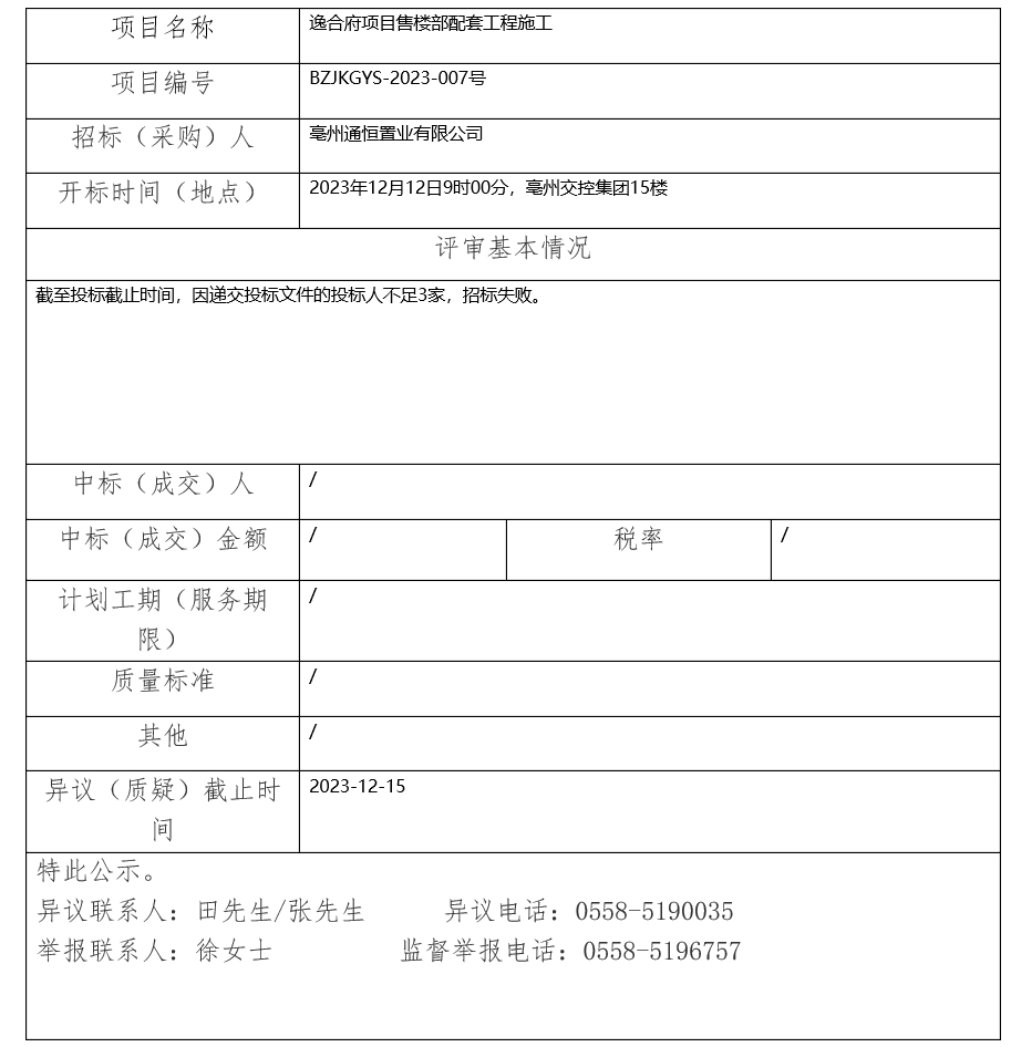 逸合府項目售樓部配套工程施工中標(biāo)(成交)結(jié)果公示