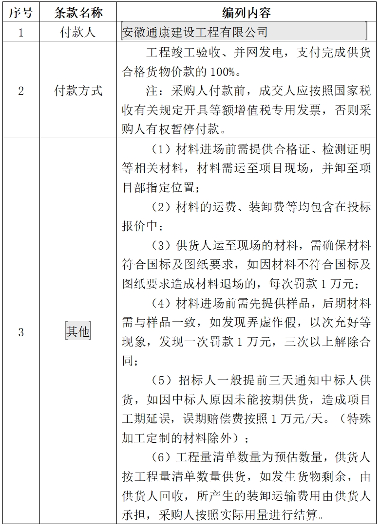 (二)采購范圍:亳州新能源發(fā)展有限公司亳州中心汽車站菜市場430kW分布式光伏發(fā)電項目絕緣電線、光伏線、電力電纜、銅接線端子、電纜橋架、球形一體式攝像機、監(jiān)控桿、剛性阻燃管、塑料給水管、閥門、立式水表等材料供應,及后期設計變更、業(yè)主及招標人要求增加、工程聯(lián)系單等要求的增加的材料。