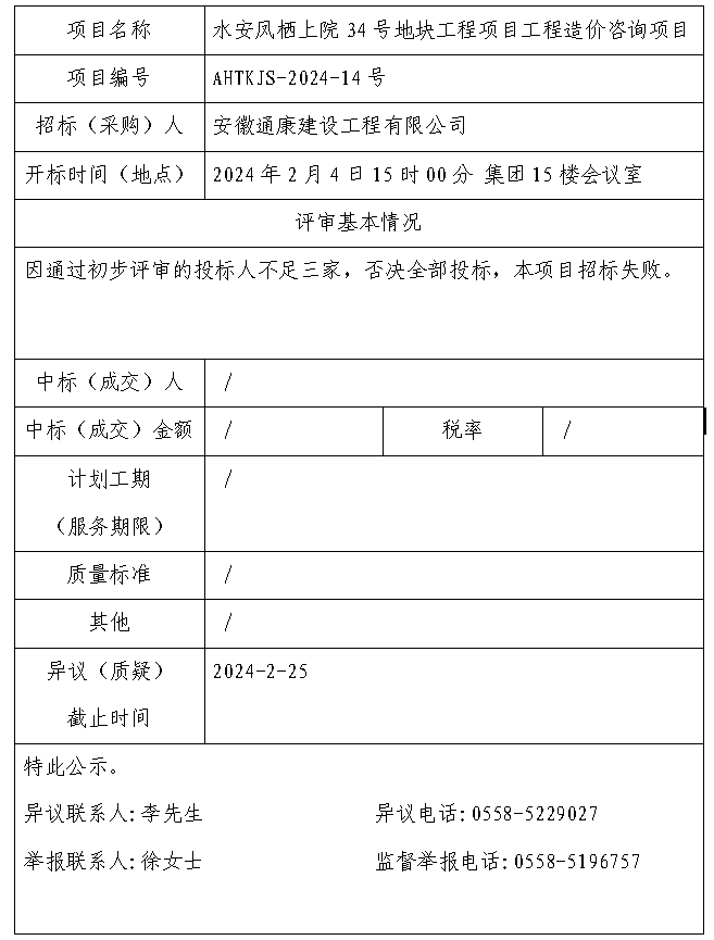 水安鳳棲上院34號地塊工程項目工程造價咨詢項目中標(biāo)(成交)結(jié)果公示