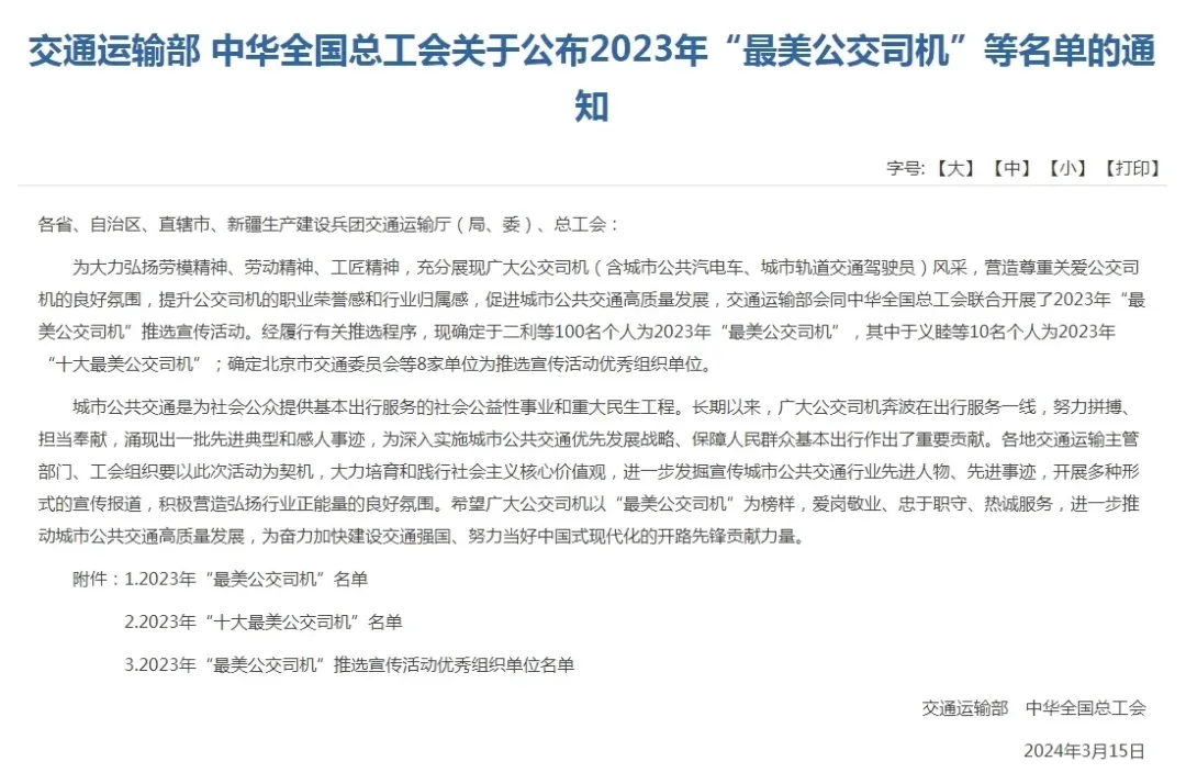 近日,交通運(yùn)輸部、中華全國總工會聯(lián)合發(fā)布2023年“最美公交司機(jī)”等名單,亳州公交駕駛員高團(tuán)結(jié)獲評“最美公交司機(jī)”。