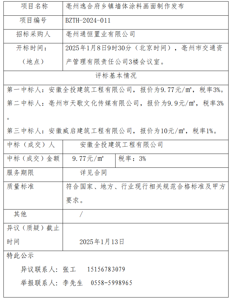 亳州逸合府鄉(xiāng)鎮(zhèn)墻體涂料畫面制作發(fā)布中標(biāo)結(jié)果公示