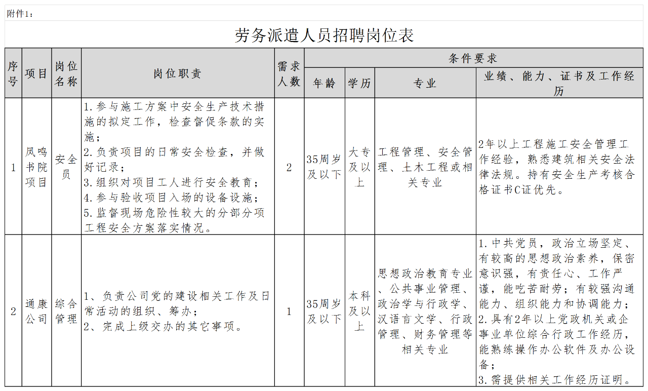 安徽通康建設(shè)工程有限公司(簡稱通康公司)系亳州交通投資控股集團有限公司下屬全資子公司,因工作需要,現(xiàn)面向社會公開招聘3名勞務(wù)派遣人員,勞務(wù)派遣人員用工期隨項目工期確定,項目結(jié)束后,勞務(wù)派遣人員及時解散?,F(xiàn)將有關(guān)事項公告如下: