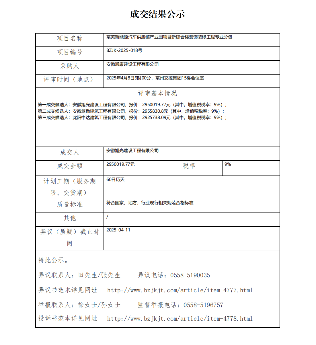 亳蕪新能源汽車供應鏈產(chǎn)業(yè)園項目新綜合樓裝飾裝修工程專業(yè)分包成交結(jié)果公示