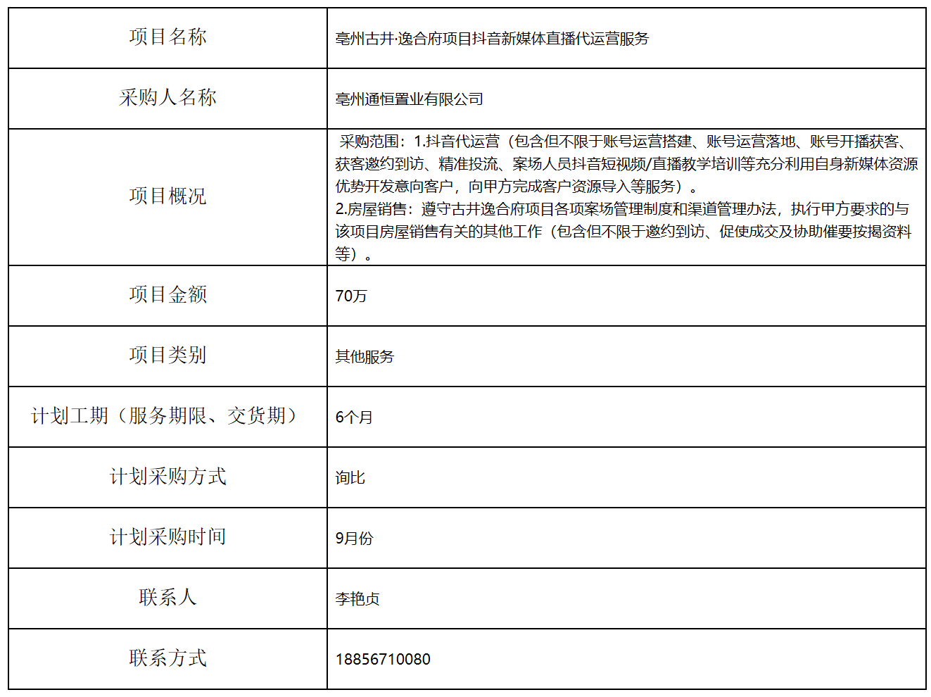 亳州古井·逸合府項(xiàng)目抖音新媒體直播代運(yùn)營服務(wù)招標(biāo)計(jì)劃