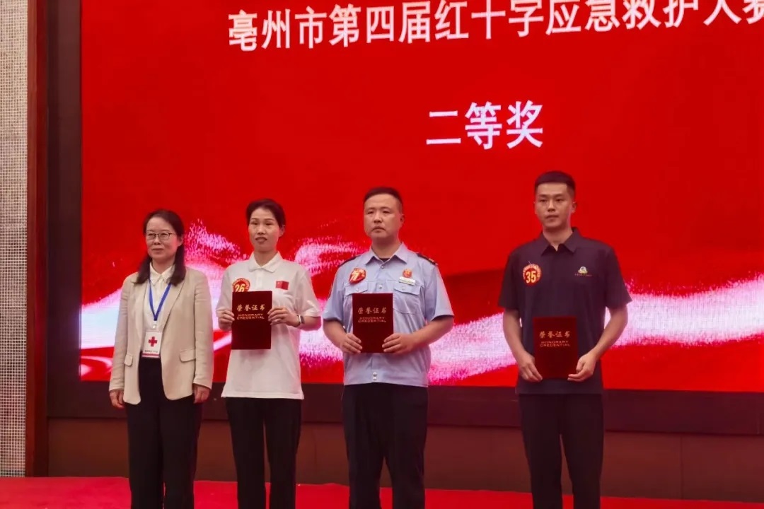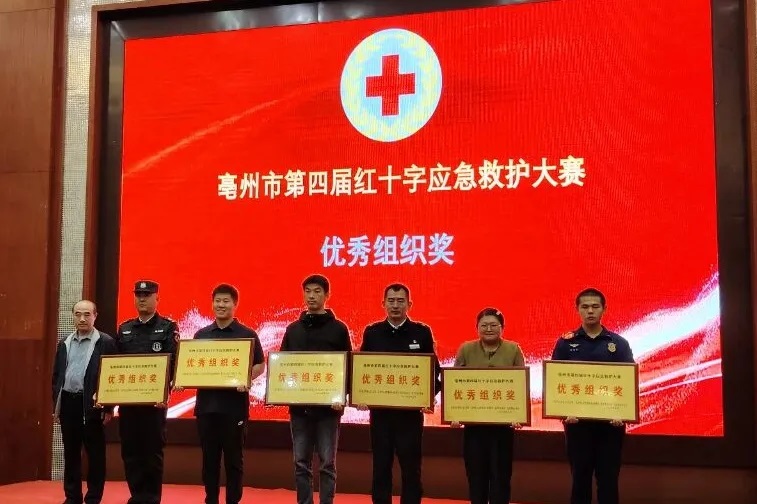 比賽項(xiàng)目包括心肺復(fù)蘇術(shù)、止血包扎、骨折固定、特殊傷處置等操作技能,譙城區(qū)、蒙城、渦陽、利辛、古井集團(tuán)等全市12支代表隊(duì)一共36名參賽選手參賽。