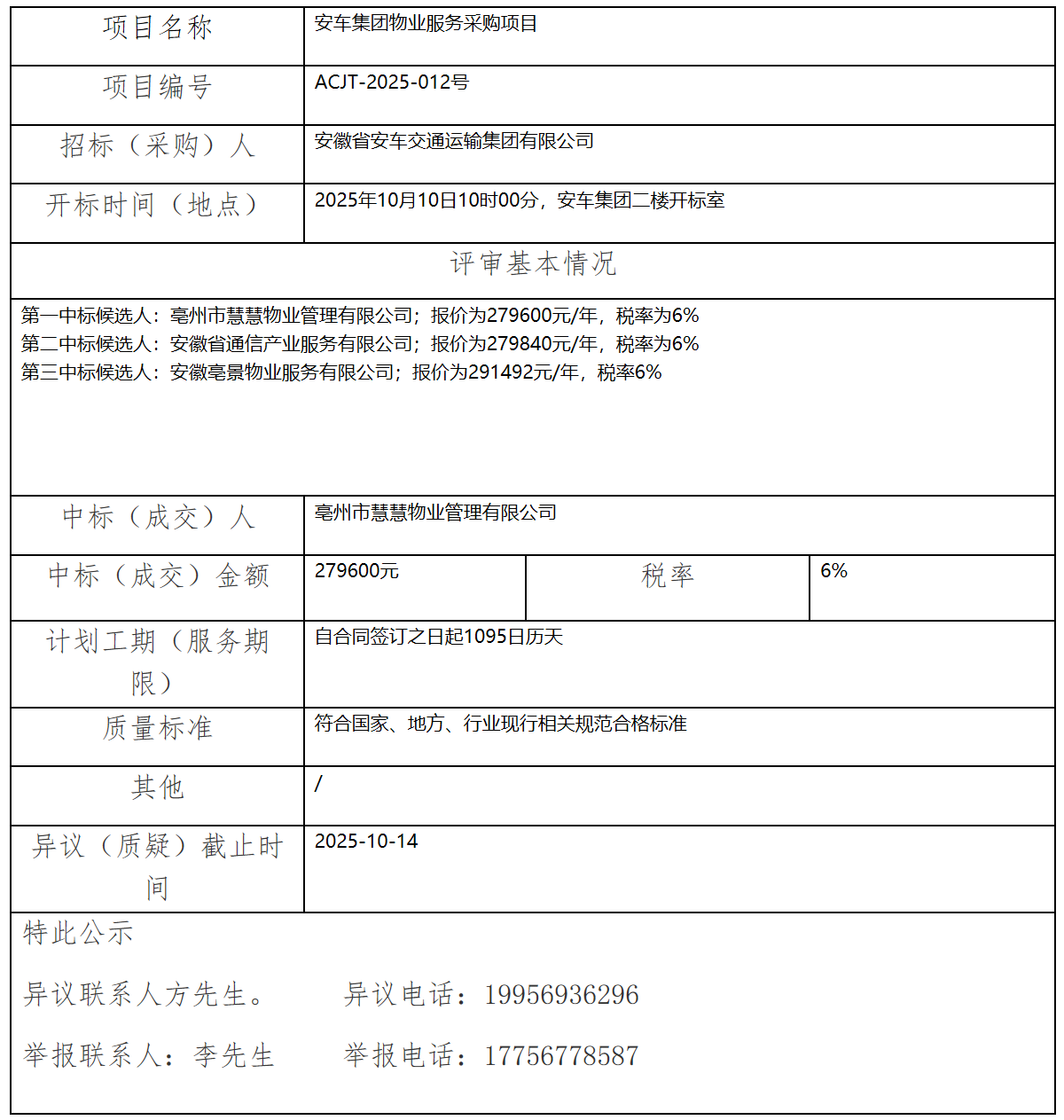 安車(chē)集團(tuán)物業(yè)服務(wù)采購(gòu)項(xiàng)目中標(biāo)(成交)結(jié)果公示