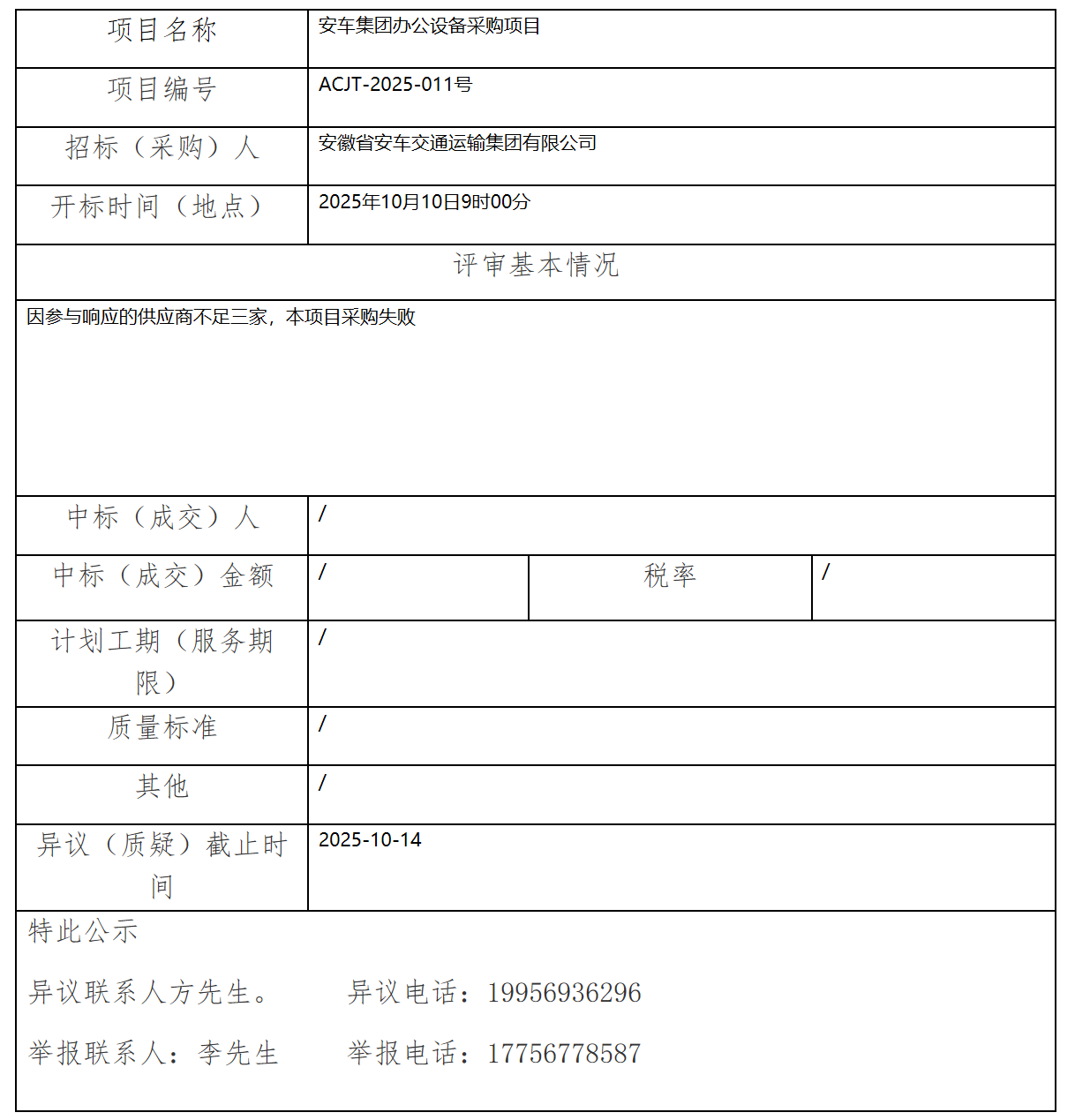 安車(chē)集團(tuán)辦公設(shè)備采購(gòu)項(xiàng)目中標(biāo)(成交)結(jié)果公示