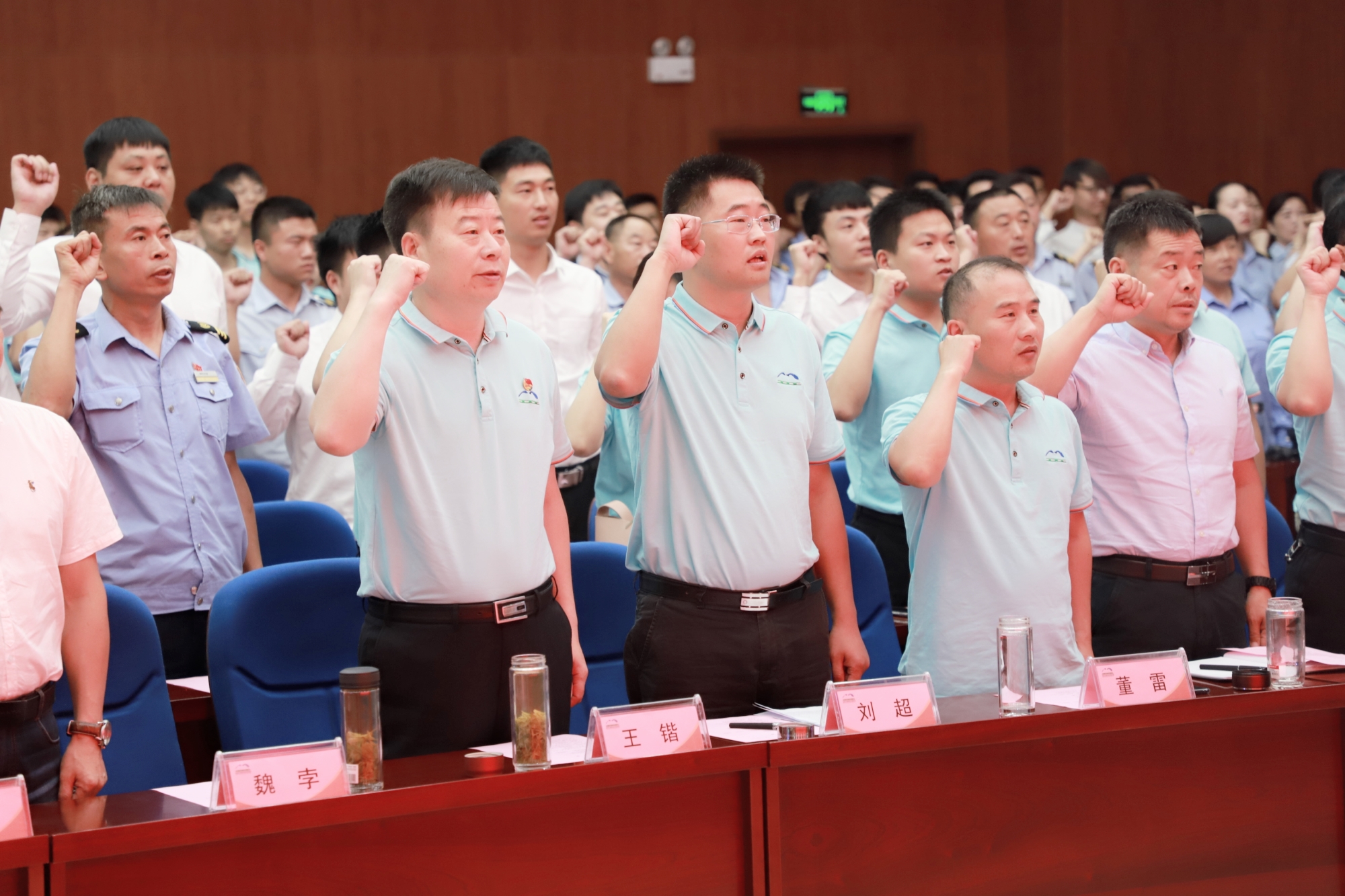 隨后,魏孛帶領(lǐng)全體與會人員,宣讀《亳州交控集團(tuán)員工誓詞》。鏗鏘有力的誓詞,擲地有聲的聲音,昭示著交控人不忘初心、不畏艱險的決心,追逐夢想、砥礪奮進(jìn)的信心。
