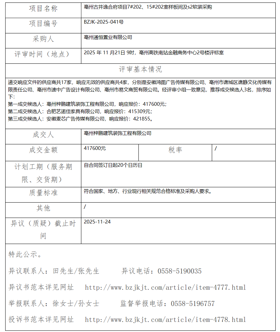 亳州古井逸合府項目7#202、15#202室樣板間及s2軟裝采購成交結(jié)果公示