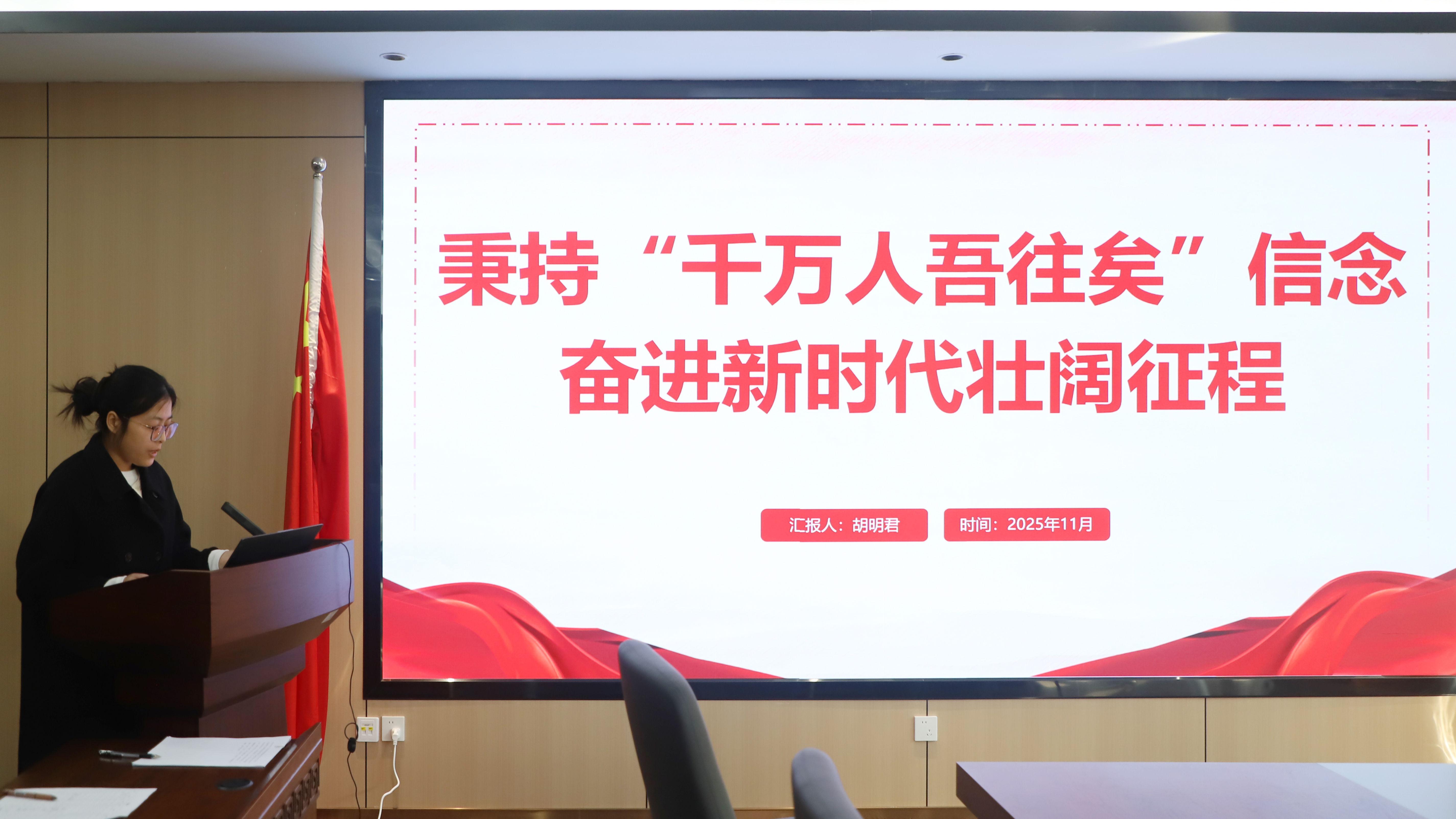 活動(dòng)中,集團(tuán)黨委委員、紀(jì)委書記燕傳碩為本月過政治生日的黨員頒發(fā)了政治生日賀卡。支部黨員胡明君同志以《秉持“千萬(wàn)人吾往矣”信念 奮進(jìn)新時(shí)代壯闊征程》為題講授黨課,黨課深入解讀了該名句的中華文化內(nèi)涵,結(jié)合其在新時(shí)代的生動(dòng)實(shí)踐,激勵(lì)全體黨員以“雖千萬(wàn)人吾往矣”的決心和勇氣攻堅(jiān)克難、砥礪前行。