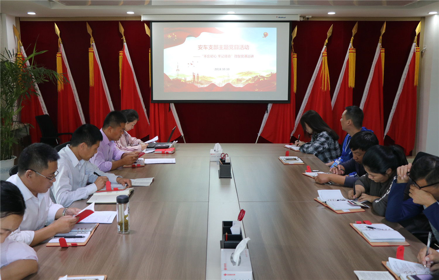 10月10日下午,安車交通黨支部在黨員活動(dòng)室開展10月主題黨日活動(dòng),活動(dòng)以“不忘初心 牢記使命”為主題講微型黨課的形式展開。支部組織委員張棟生主持會(huì)議,全體黨員、預(yù)備黨員參加會(huì)議。