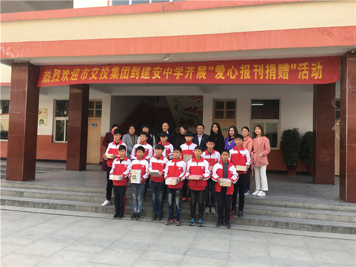 11月15日,為關(guān)愛留守兒童,豐富“黨員活動日”主題活動,交投集團(tuán)在建安中學(xué)開展“愛心報(bào)刊”捐贈留守兒童公益活動。同時(shí),按照“4+X”內(nèi)容,全體黨員共同頌唱了國歌,重溫入黨誓詞,按期交納了當(dāng)月黨費(fèi),集中學(xué)習(xí)了《黨的十九大輔導(dǎo)讀本》部分內(nèi)容。