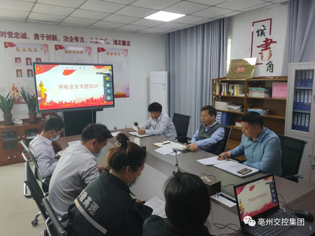 ???4月15日下午,通達(dá)利公司組織召開(kāi)用電安全專題培訓(xùn)會(huì),在崗員工在收費(fèi)站會(huì)議室參會(huì),輪班休息員工通過(guò)騰訊會(huì)議直播參加會(huì)議。
